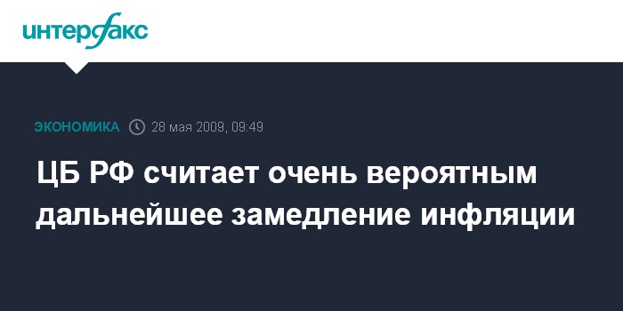 Москва. 28 мая. INTERFAX.RU - ЦБ РФ считает "очень вероятным", что в ближайшие месяцы замедление темпов инфляции продолжится, сказал председатель Банка России Сергей Игнатьев на банковском форуме в Санкт-Петербурге.