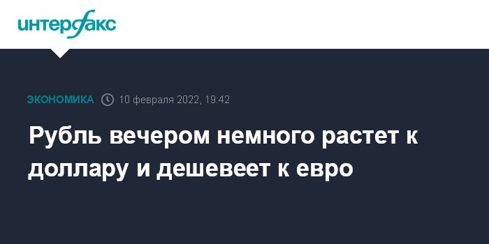 Москва. 10 февраля. INTERFAX.RU - Доллар немного понижается, евро подрастает на Московской бирже в четверг вечером, следуя за динамикой пары "евро-доллар" на рынке Forex, которая демонстрирует сильный рост волатильности после публикации данных о потребительской инфляции в США в январе; рубль стабилен к бивалютной корзине в условиях разнонаправленной динамики в основных парах и в ожидании заседания Банка России по ключевой ставке.