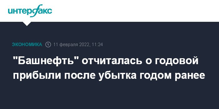 Москва. 11 февраля. INTERFAX.RU - Чистая прибыль "Башнефти" по МСФО по итогам 2021 года составила 84,9 млрд рублей против 12,5 млрд рублей чистого убытка годом ранее, говорится в отчете компании.