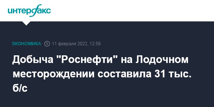 Москва. 11 февраля. INTERFAX.RU - Добыча "Роснефти" на Лодочном месторождении (входит в состав Ванкорского кластера) в рамках опытно-промышленной разработки (ОПР) за 2021 год составила 31,1 тысячи баррелей в сутки, сообщила компания.