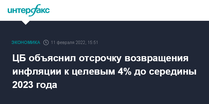 ЦБ объяснил отсрочку возвращения инфляции к целевым 4% до середины 2023 года