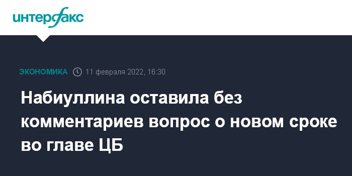 Москва. 11 февраля. INTERFAX.RU - Эльвира Набиуллина, чьи полномочия на посту главы ЦБ РФ истекают в этом году, оставила без комментариев вопрос о новом сроке.