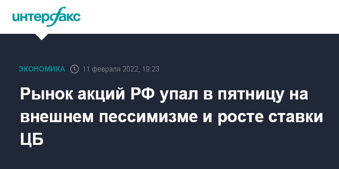 Рынок акций РФ упал в пятницу на внешнем пессимизме и росте ставки ЦБ