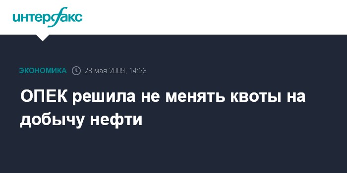 Москва. 28 мая. INTERFAX.RU - ОПЕК приняла решение о сохранении нынешних квот на добычу нефти, сообщило агентство Bloomberg со ссылкой на заявление представителей стран, входящих в организацию.
