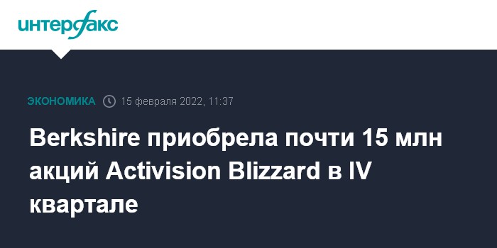 Москва. 15 февраля. INTERFAX.RU - Инвесткомпания американского миллиардера Уоррена Баффета Berkshire Hathaway Inc. приобрела 14,7 млн акций разработчика видеоигр Activision Blizzard в четвертом квартале 2021 года, и эта инвестиция уже принесла свои плоды.