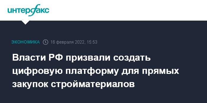 Власти РФ призвали создать цифровую платформу для прямых закупок стройматериалов
