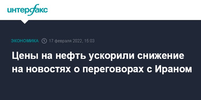 Москва. 17 февраля. INTERFAX.RU - Снижение цен на нефть ускорилось в четверг на фоне ожиданий, что США и Иран смогут вскоре вернуться к ядерной сделке, которая откроет путь для иранской нефти на мировой рынок.