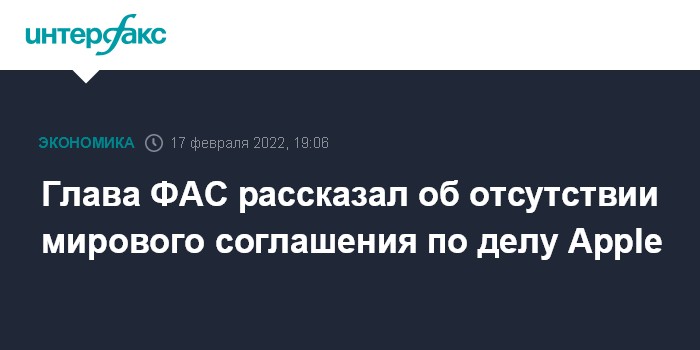 Москва. 17 февраля. INTERFAX.RU - Федеральная антимонопольная служба (ФАС) РФ все еще рассматривает дело в отношении Apple Inc. о злоупотреблении на рынке приложений, и пока никакое мировое соглашение не обсуждается, сообщил глава регулятора Максим Шаскольский на брифинге.