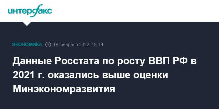 Данные Росстата по росту ВВП РФ в 2021 г. оказались выше оценки Минэкономразвития