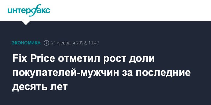 Москва. 21 февраля. INTERFAX.RU - Ритейлер Fix Price, управляющий крупнейшей в России сетью магазинов фиксированных цен, отметил рост числа покупателей-мужчин за последние 10 лет и увеличение покупателей с более высокими доходами.