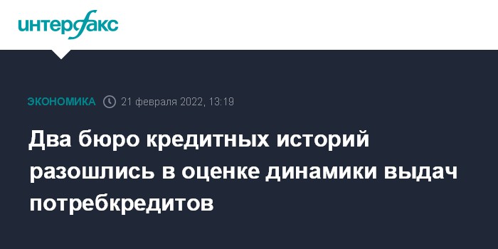 Москва. 21 февраля. INTERFAX.RU - Национальное бюро кредитных историй (НБКИ) и Объединенное кредитное бюро (ОКБ) разошлись в оценке динамики выдачи потребительских кредитов за январь 2022 года.