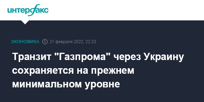 Заявка "Газпрома" на транзит газа через Украину на вторник 22 февраля составляет 50,4 млн куб. м – после 50,5 млн куб. м на понедельник, свидетельствуют данные "Оператора газотранспортной системы Украины".