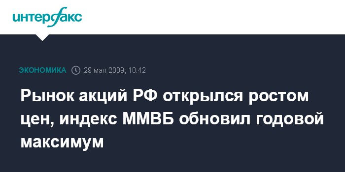 Москва. 29 мая. INTERFAX.RU - Рынок акций РФ открылся в пятницу дальнейшим ростом цен следом за нефтью, превысившей $65 за баррель WTI, а также на фоне позитивной динамики мировых фондовых площадок; индекс ММВБ обновил максимум с начала года, взлетев выше 1100 пунктов.