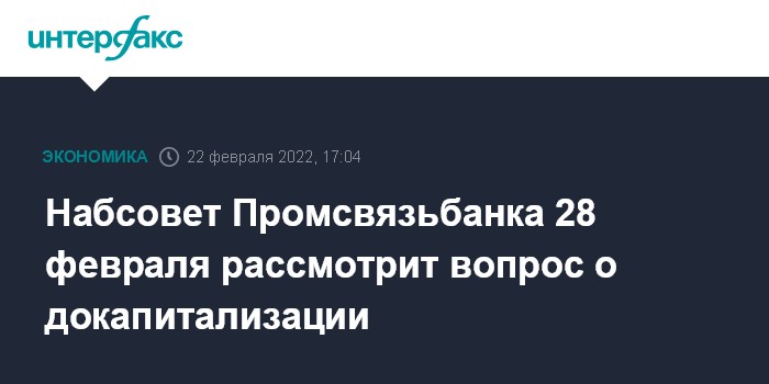 Набсовет Промсвязьбанка 28 февраля рассмотрит вопрос о докапитализации