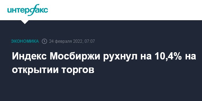 Москва. 24 февраля. INTERFAX.RU - Торги на российском рынке акций начались с обвала индекса Мосбиржи на 10,4%.
