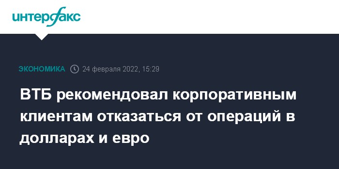ВТБ рекомендовал корпоративным клиентам отказаться от операций в долларах и евро