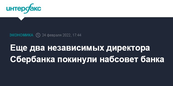 Рядом с их именами на сайте Сбербанка в четверг появилась пометка "считается выбывшим из состава наблюдательного совета с 24 февраля 2022 года по личному заявлению".