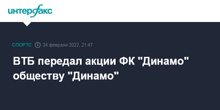 ВТБ передал акции ФК "Динамо" обществу "Динамо"