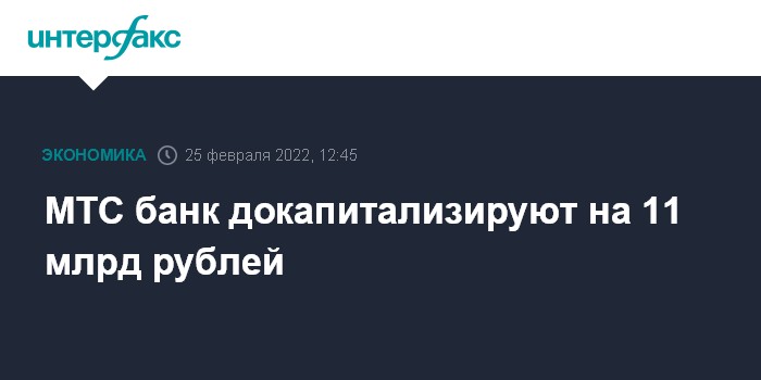 Москва. 25 февраля. INTERFAX.RU - "МТС" докапитализирует дочерний МТС банк путем передачи в его имущество безвозмездного вклада на 11 млрд рублей. Соответствующее решение одобрил совет директоров кредитной организации.