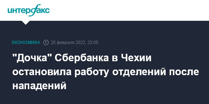 Москва. 25 февраля. INTERFAX.RU - Sberbank Czech Republic (дочерний банк Сбербанка России в Чехии) приостановил работу отделений в рамках мер безопасности, сообщила пресс-служба материнской кредитной организации.