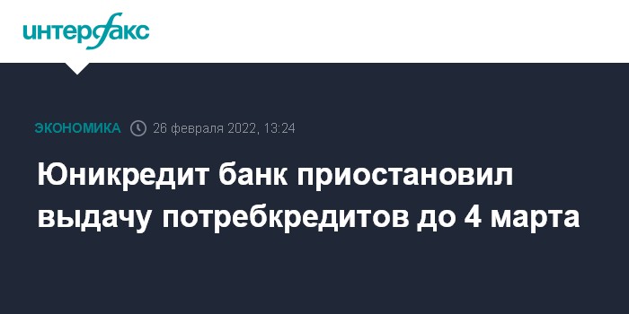 Юникредит банк приостановил выдачу потребкредитов до 4 марта
