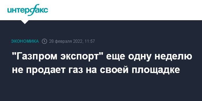 Москва. 28 февраля. INTERFAX.RU - Электронная торговая платформа ООО "Газпром экспорт" не планирует продаж газа на наступившей рабочей неделе (с 28 февраля по 4 марта), свидетельствует график ЭТП "дочки" "Газпрома".