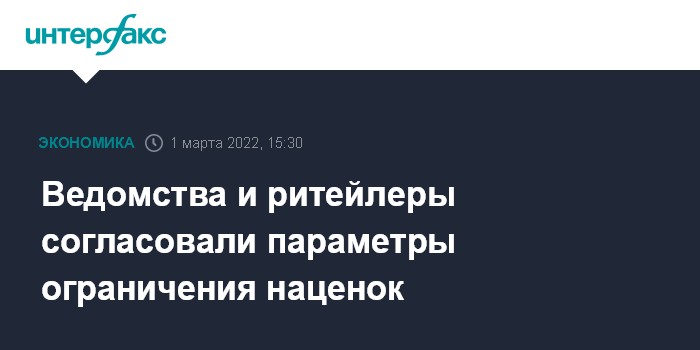 Как сообщалось, в январе крупнейший российские ритейлеры "Магнит", Х5 Retail Group согласились ограничить наценки на отдельные социально значимые продукты питания на уровне 10%. Затем ведомства рекомендовали ритейлу снизить предельные наценки на социально значимые товары до 5%.