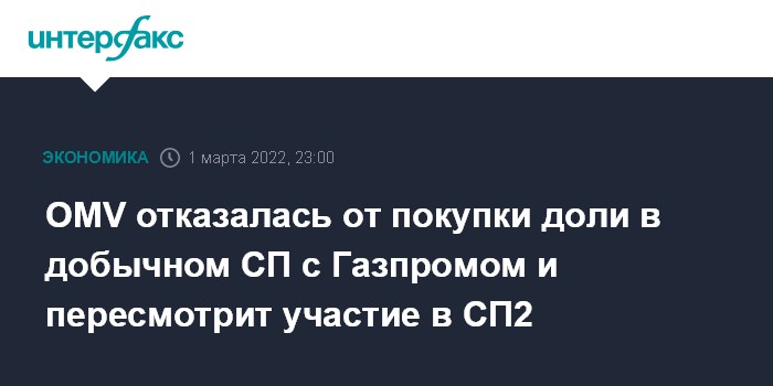 OMV отказалась от покупки доли в добычном СП с Газпромом и пересмотрит участие в СП2