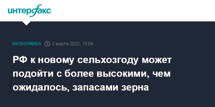 Москва. 2 марта. INTERFAX.RU - Практическая остановка экспорта зерна из-за событий на Украине, отсутствие судоходства на Азовском море и резкое падение отгрузок в портах Черного моря могут привести к тому, что к новому сельхозгоду (начнется 1 июля 2022 года) РФ подойдет с повышенными запасами зерна. Это может негативно отразиться на зерновой отрасли. Такой прогноз дал генеральный директор Института конъюнктуры аграрного рынка (ИКАР) Дмитрий Рылько.