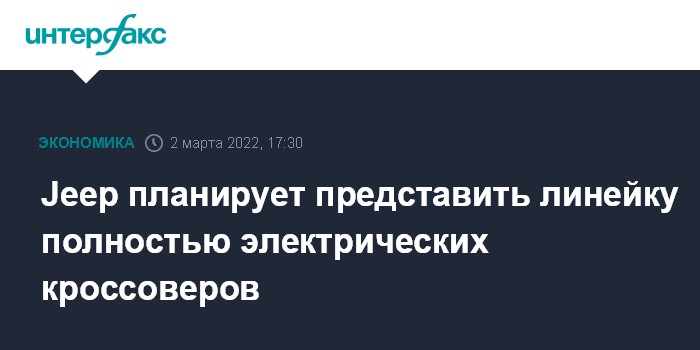 Москва. 2 марта. INTERFAX.RU - Американский автопроизводитель Jeep планирует вывести на рынок новую линейку кроссоверов на полностью электрическом приводе, пишет The Wall Street Journal со ссылкой на заявление Карлоса Тавареса, главы компании Stellantis, которой принадлежит этот бренд.