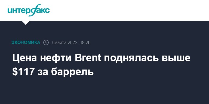 Цена нефти Brent поднялась выше $117 за баррель