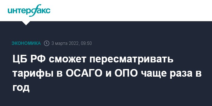 ЦБ РФ сможет пересматривать тарифы в ОСАГО и ОПО чаще раза в год
