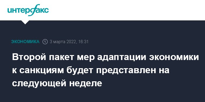 Второй пакет мер адаптации экономики к санкциям будет представлен на следующей неделе