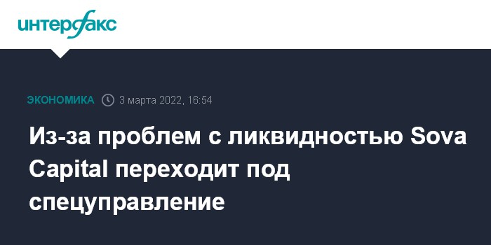 Из-за проблем с ликвидностью Sova Capital переходит под спецуправление
