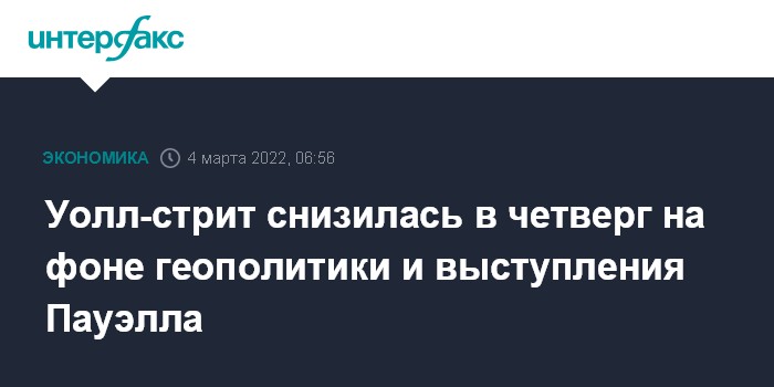 Уолл-стрит снизилась в четверг на фоне геополитики и выступления Пауэлла