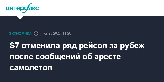 S7 отменила ряд рейсов за рубеж после сообщений об аресте самолетов