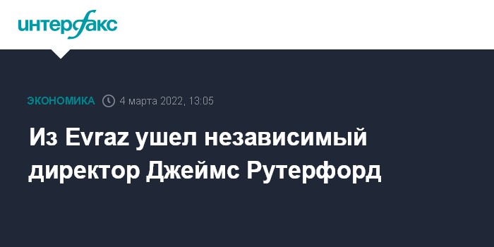 Москва. 4 марта. INTERFAX.RU - Независимый директор Evraz Джеймс Рутерфорд уведомил 3 марта совет директоров о выходе из его состава, сообщила компания.