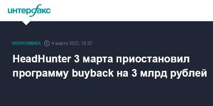 HeadHunter 3 марта приостановил программу buyback на 3 млрд рублей
