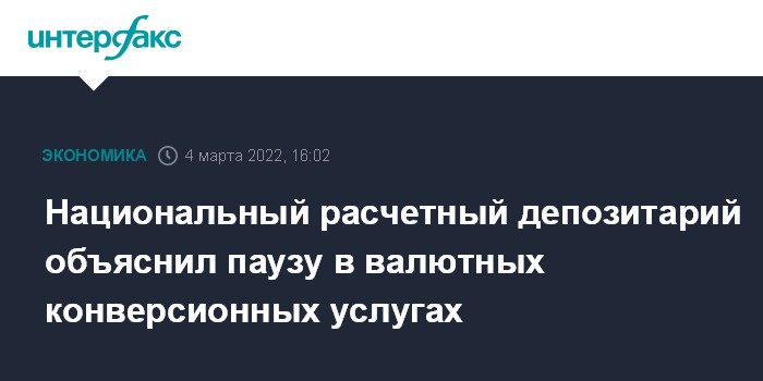 Москва. 4 марта. INTERFAX.RU - Национальный расчетный депозитарий (НРД) группы Московской биржи объяснил приостановку валютных конверсионных услуг для клиентов накоплением не исполненных иностранными банками-корреспондентами расчетных операций.