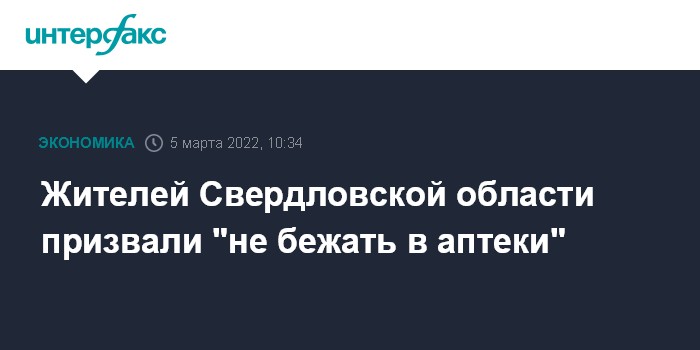 "Более того, значительная часть, - больше половины лекарственных средств, - производится на территории РФ и бывших республик Советского Союза. По сегодняшней информации, мы не имеем каких-либо сведений о прекращении поставок лекарственных средств. (...) Самое главное - это не допустить ажиотажного спроса. Когда все население Екатеринбурга или другого населенного пункта придет и будет брать по 10 пачек чего-либо, то, хотим мы этого или не хотим, но временный дефицит возникнуть может ", - сказал чиновник.
