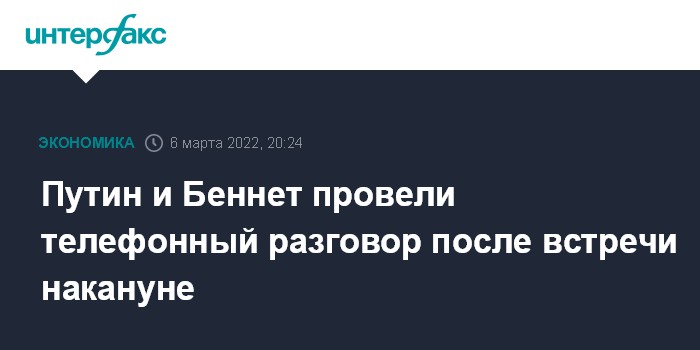 Накануне пресс-служба Кремля сообщила, что 5 марта по взаимной договоренности состоялся краткий рабочий визит в Москву Беннета. "Президент Российской Федерации Владимир Путин провел с Нафтали Беннетом переговоры, в ходе которых обсуждались различные аспекты ситуации на Украине в контексте специальной военной операции России по защите Донбасса", - говорилось в сообщении.