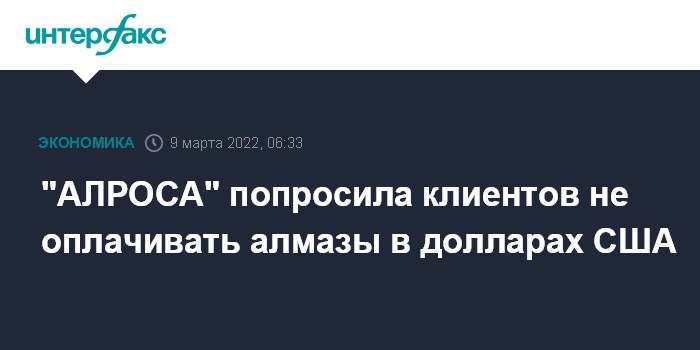 Хотя санкции США не запрещают операции с "АЛРОСА" в долларах, российская компания попросила клиентов платить в евро и других валютах. Банки осуществляли переводы с использованием альтернатив SWIFT, от которой были отключены несколько российских кредитных организаций.