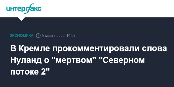 Так он прокомментировал слова замгоссекретаря США Виктории Нуланд о том, что "Северный поток 2" "мертв и не возродится".