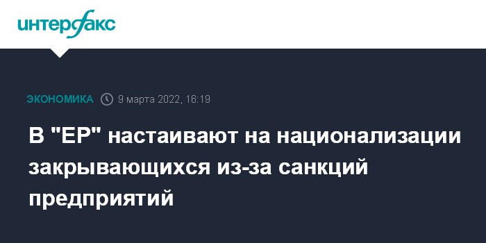 В "ЕР" настаивают на национализации закрывающихся из-за санкций предприятий