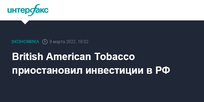 Москва. 9 марта. INTERFAX.RU - Табачный концерн British American Tobacco PLC (BAT) приостановил инвестиции в РФ.