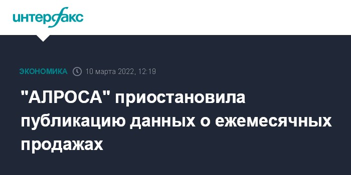 "В связи с текущими событиями "АЛРОСА" вынуждена адаптироваться к меняющимся условиям работы и приостанавливает публикацию ежемесячных данных о продажах до отдельного уведомления", - сообщил представитель компании.