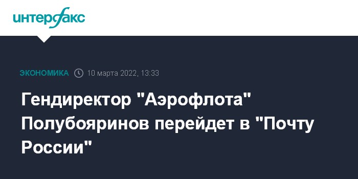 Информацию об уходе из "Аэрофлота" Полубояринова подтвердил источник "Интерфакса" в авиаотрасли. В "Почте России" не предоставили комментариев.