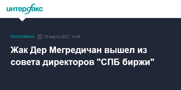 Москва. 10 марта. INTERFAX.RU - Жак Дер Мегредичан еще 3 марта решил выйти из совета директоров "СПБ биржи", сообщила биржа.
