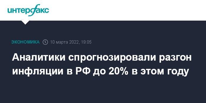 Аналитики спрогнозировали разгон инфляции в РФ до 20% в этом году