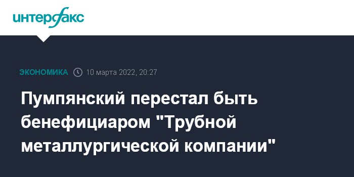 Пумпянский перестал быть бенефициаром "Трубной металлургической компании"